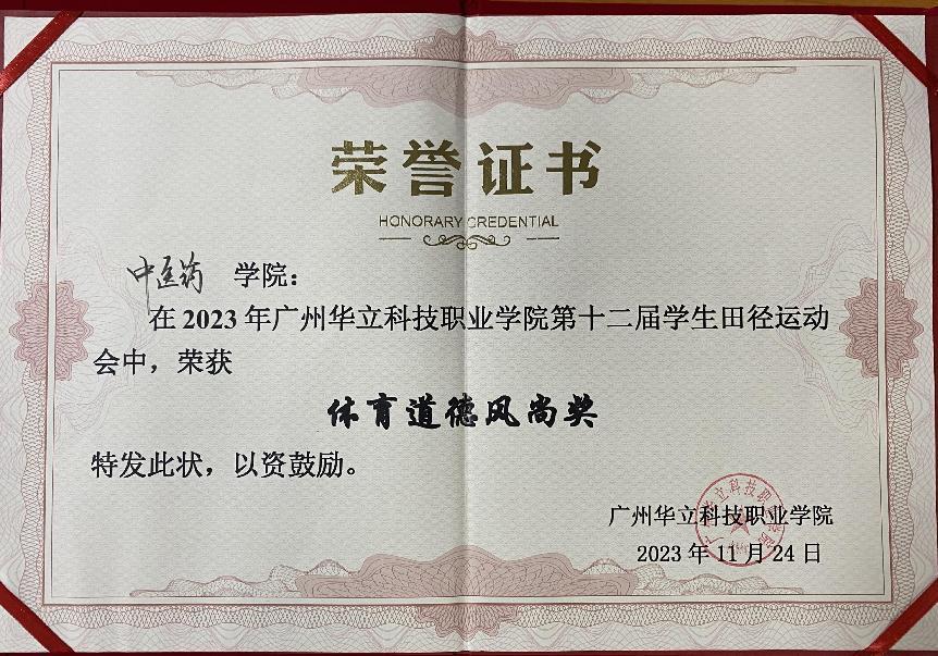 中医药学院获得团体总分第一名和体育道德风尚奖