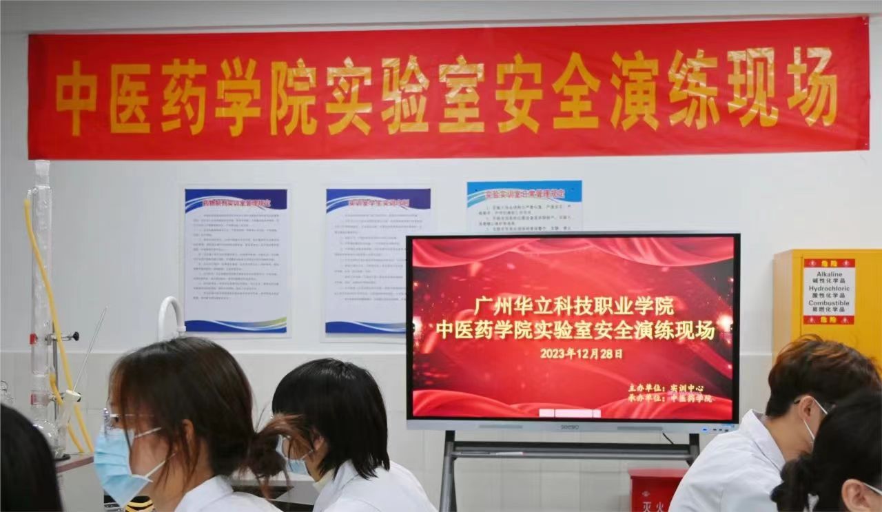 本次实验室安全演练于20231228西二-101药物制剂实训室举行,莅临本次实验室安全演练的领导有广州华立科技职业学院党委副书记,副校长高尧来老师、校长助理叶春桃老师等领导,我院对各位领导亲临现场指导表示衷心的感谢和热烈的欢迎。