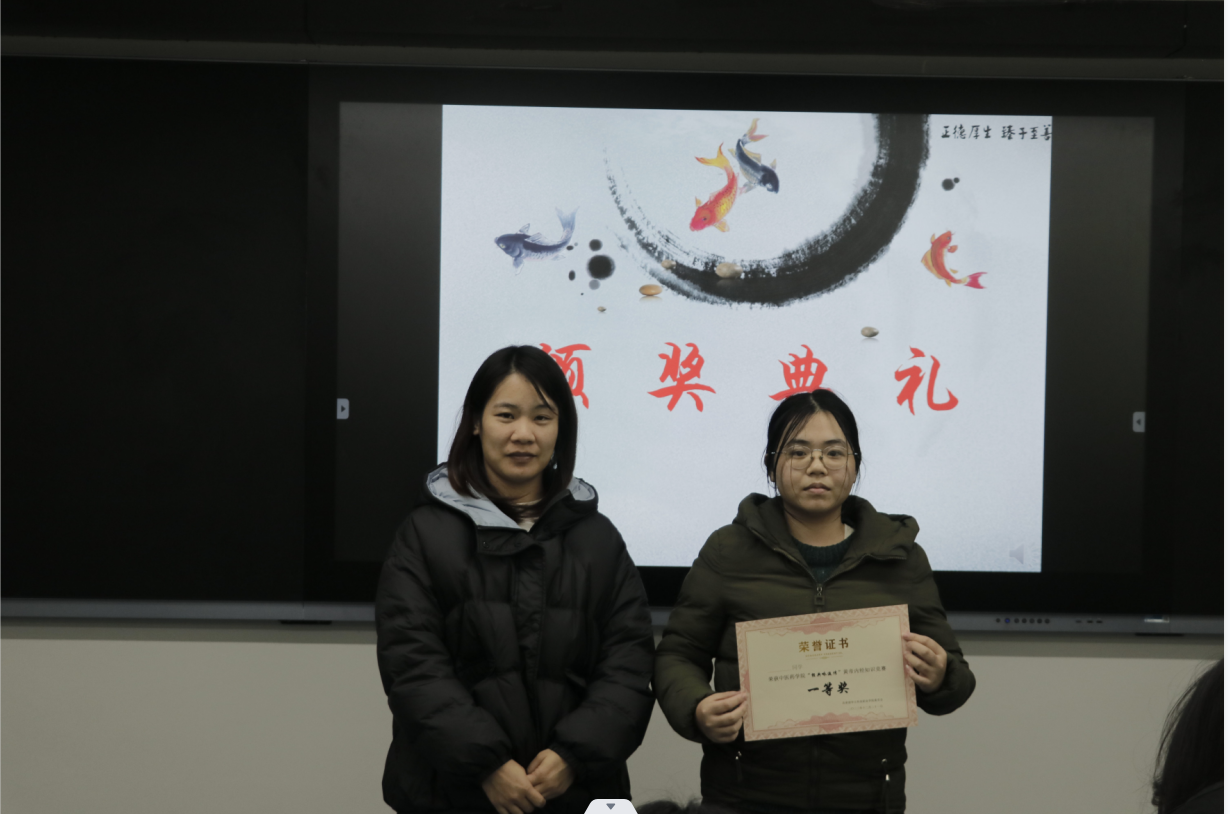 最后,教科研主任郭燕婷老师及评委王清玉老师、董颖敏老师上台总结发言。对获奖的同学表示祝贺,肯定了所有参赛选手的精神风貌,呼吁大家“学经典,用经典”,做到“传承精华,守正创新”,通过汲取中医药文化精髓,为中医药事业发展做出更大的贡献。