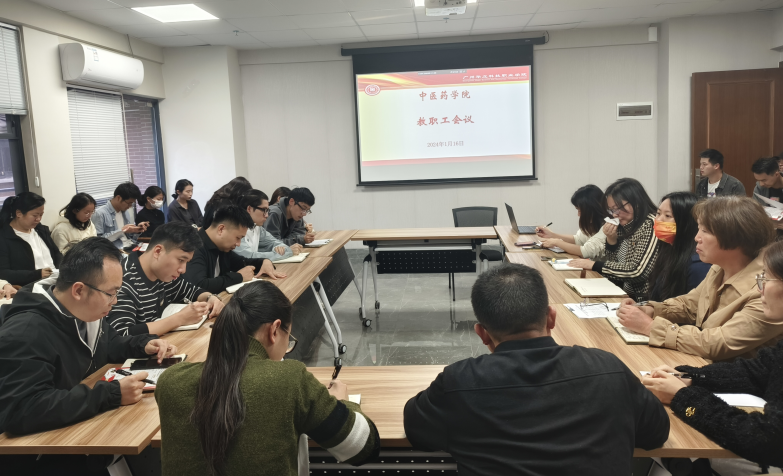 随着2024年寒假的来临,中医药学院为进一步凝聚发展共识,明确本学期期末工作、假期安全和下学期工作计划,于2024年1月16日召开中医药学院全体教职工大会。学院全体教职工参加会议,会议由学院办公室副主任李远兴主持。会上,各条线负责人针对所管辖的工作范围进行了通报,学院副院长张志勇及党支部书记曾祥彪针对本学期中医药学院的分管工作做了总结发言,并要求大家认真落实好期末工作安排,传达寒假的工作部署和对于下学期提出具体工作安排。