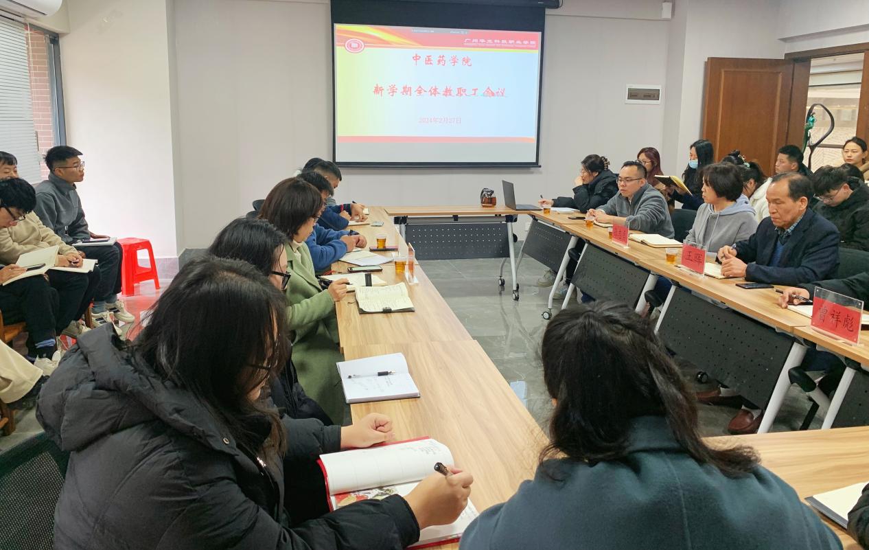 春去春回,日进日新。为布新局、谋新篇,切实做好新学期各项工作,2月27日下午,中医药学院在G1-212会议室召开2023-2024学年第二学期新学期全体教职工大会。学校校长助理叶春桃、人事处处长钟文浩、中医药学院院长王晖、直属党支部书记、副院长曾祥彪、副院长张志勇出席会议并讲话,中医药学院各线主任及全体教职员工参加了会议,会议由中医药学院学院院长王晖主持。