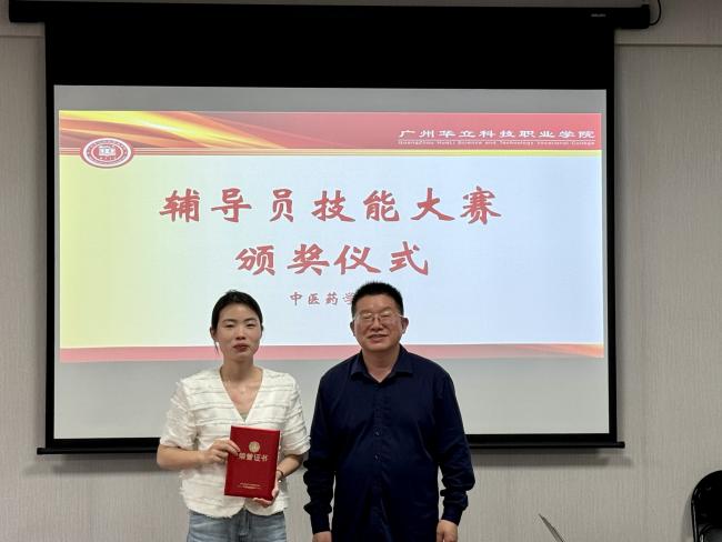 党支部书记曾祥彪为一等奖获得者曾玉梅、刘洋颁奖
