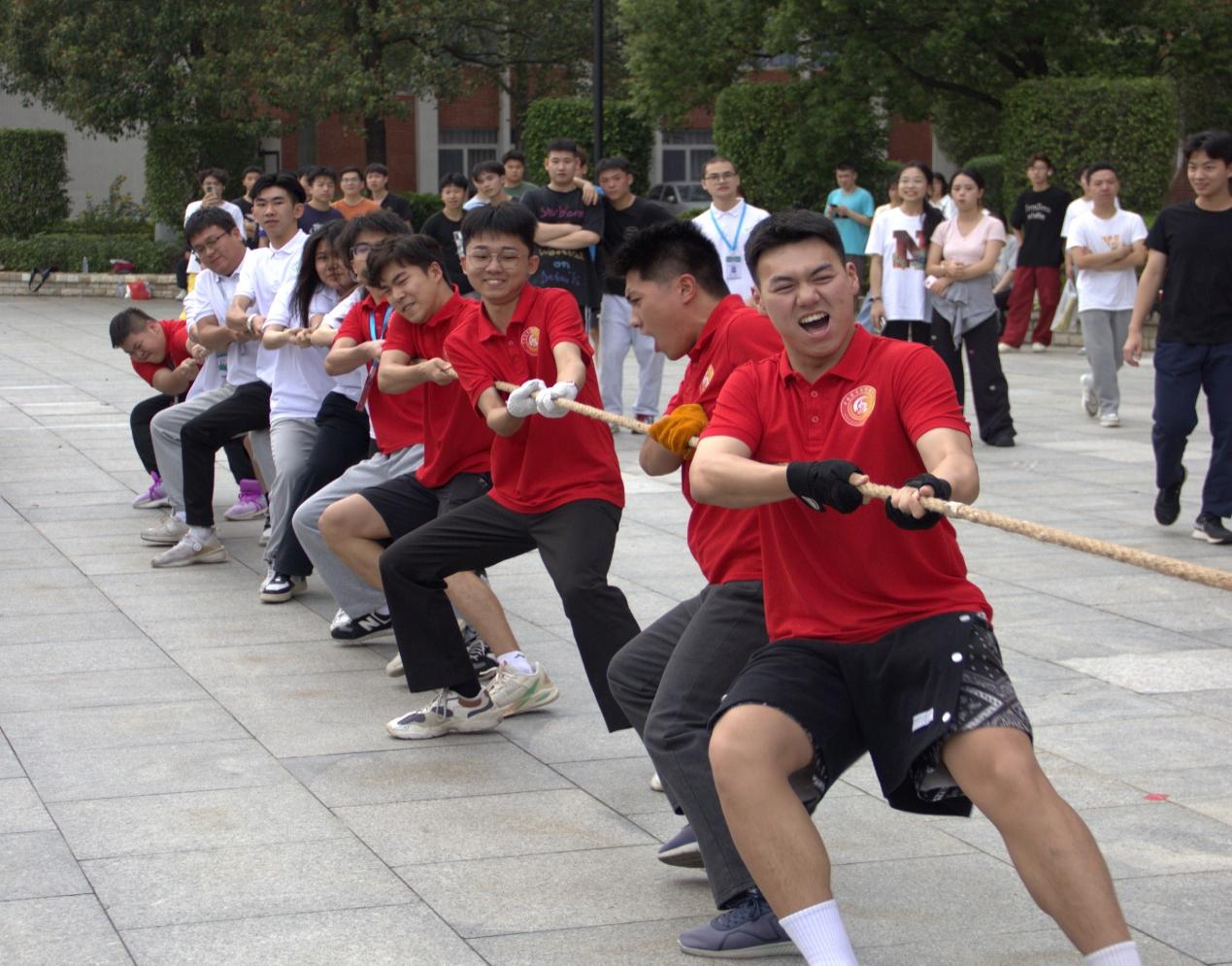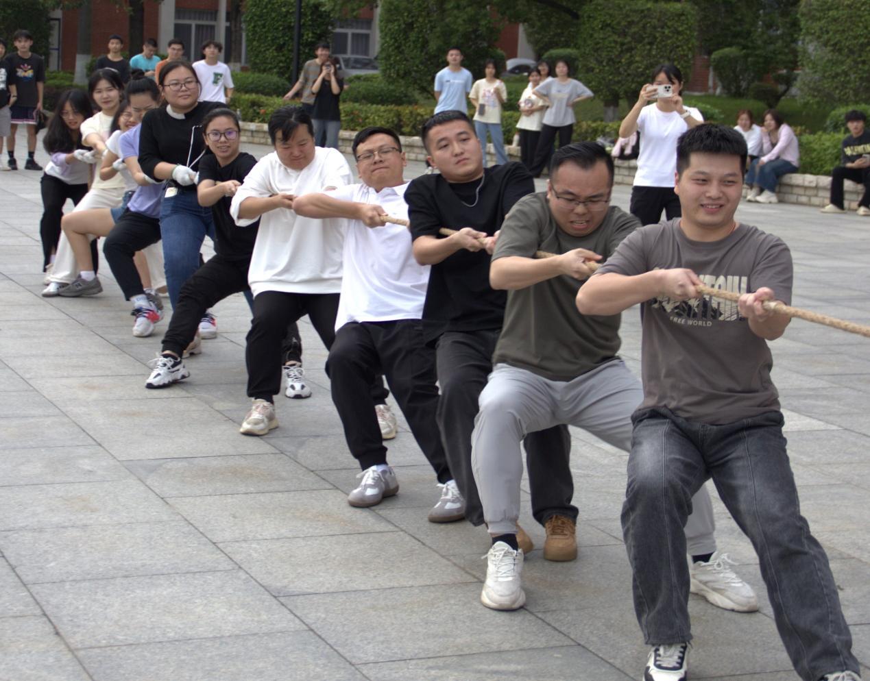 教师代表队以学院为单位抽签进行分组,组成了一支支斗志昂扬的参赛队伍与学生进行了师生友谊赛。比赛开始前,各队员进行了充分的热身运动,摩拳擦掌,蓄势待发。随着裁判的一声哨响,比赛正式拉开帷幕。他们紧握长绳,咬紧牙关,全力以赴地往后拉。观众们则在一旁呐喊助威,加油声此起彼伏,为比赛增添了浓厚的氛围。