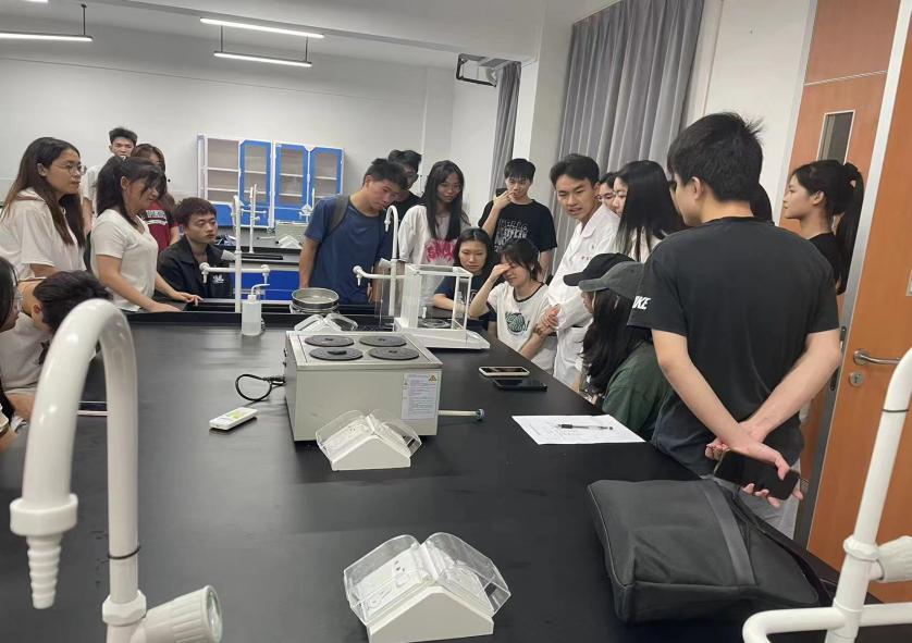 在讲解完分析天平的相关理论知识后,杨瑞雨老师又给同学们演示了分析天平的正确使用与维护工作,详细地讲解每一步的注意事项,耐心解答同学们提出的问题。在老师的指导下,同学们进行了实际操作,加深了对仪器操作流程和规范的理解,进一步减少了在实验过程中因仪器操作不规范而导致的误差。