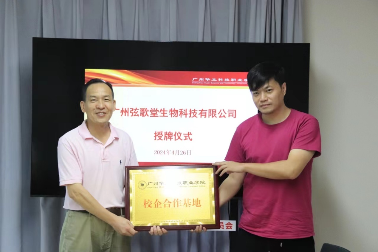 陈校长对大参林来校沟通校企合作表示欢迎,并从学校学科建设、教学优势、产教融合、人才培养、教学科研资源平台、学生实习就业等方面做了详细介绍。中医药学院王晖在会上盛赞弦歌堂对于校企合作方面的积极参与,并在会上授予“校企合作”牌匾。