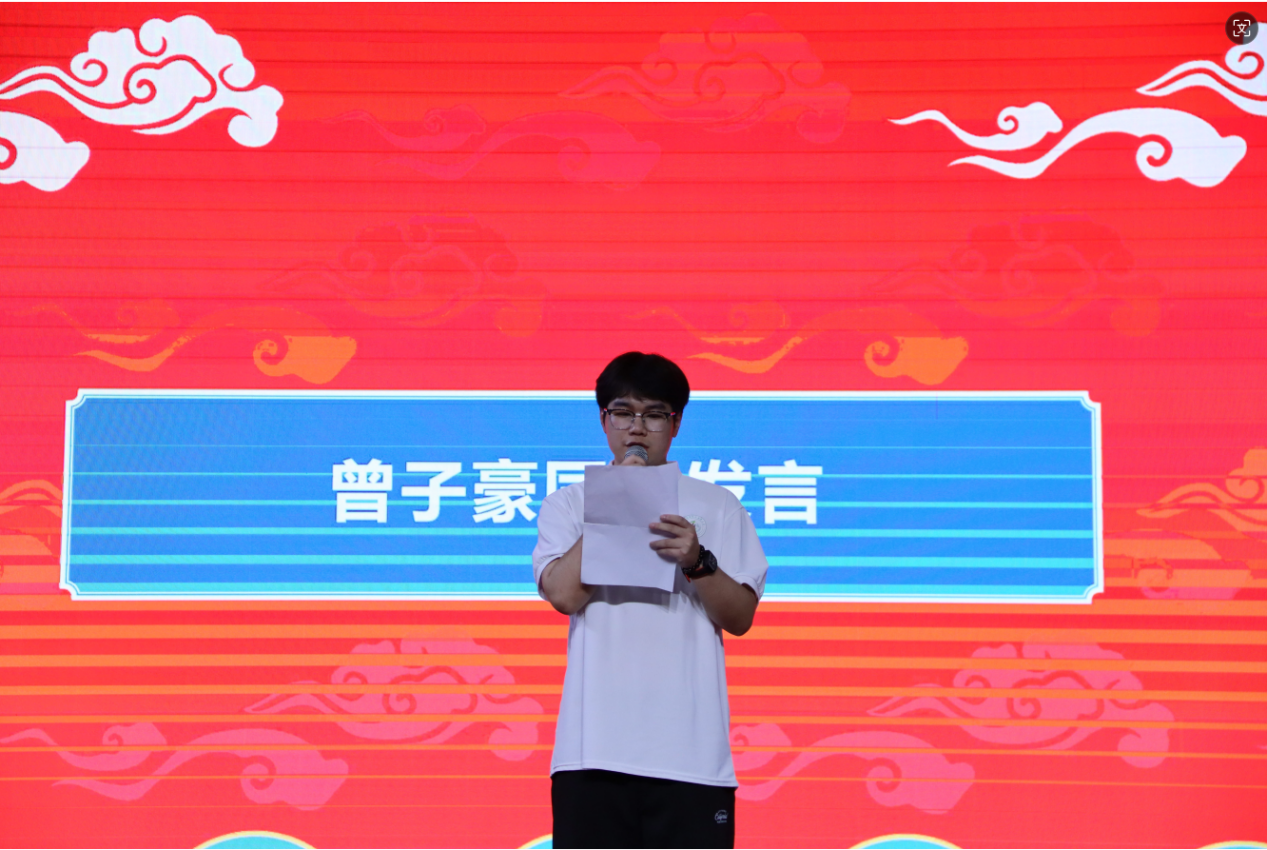 紧接着,学生会干部曾子豪同学代表全体同学上台发言。他首先代表学生会向即将离校的实习生们表示热烈的祝贺和美好的祝愿。他说道:“今天的欢送会,不仅是对我们过去学习成果的一次肯定,更是对未来实习生涯的美好祝愿。我们在学院的日子里,勤奋学习,刻苦钻研,用实际行动诠释了中医药精神。如今,我们即将离开熟悉的校园,踏上新的征程,我们深感骄傲和自豪。”