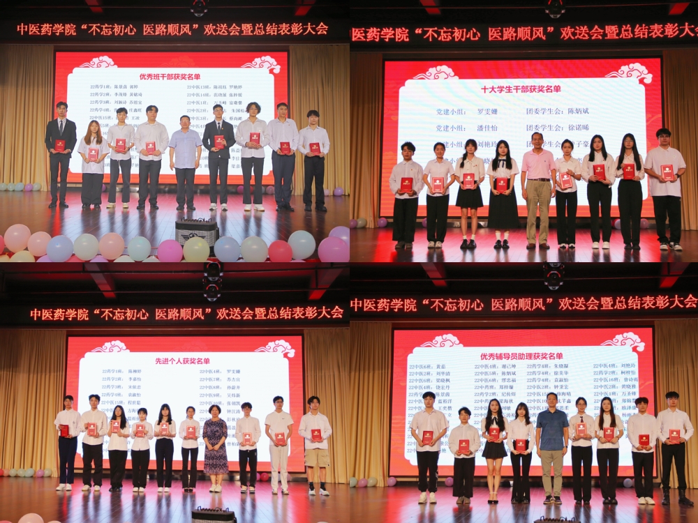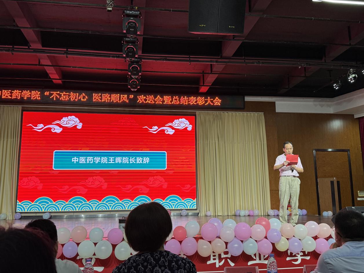 二载励志苦读,一朝鲲鹏展翅。6月13日晚上,中医药学院在图书馆八楼为2022级学生举行了欢送会暨总结表彰大会。莅临此次大会的有中医药学院王晖院长,中医药学院直属党支部书记曾祥彪老师,中医药学院副院长张志勇老师,中医药学院办公室主任李远兴老师,中医药学院学管主任陈辉老师,以及中医药学院的辅导员、各科任老师和各班学生代表共同见证了2022级学子即将踏入社会实习的期待和忐忑,为他们开启了未来的追梦之路壮行。大会由林敬润、虞佳慧同学主持。