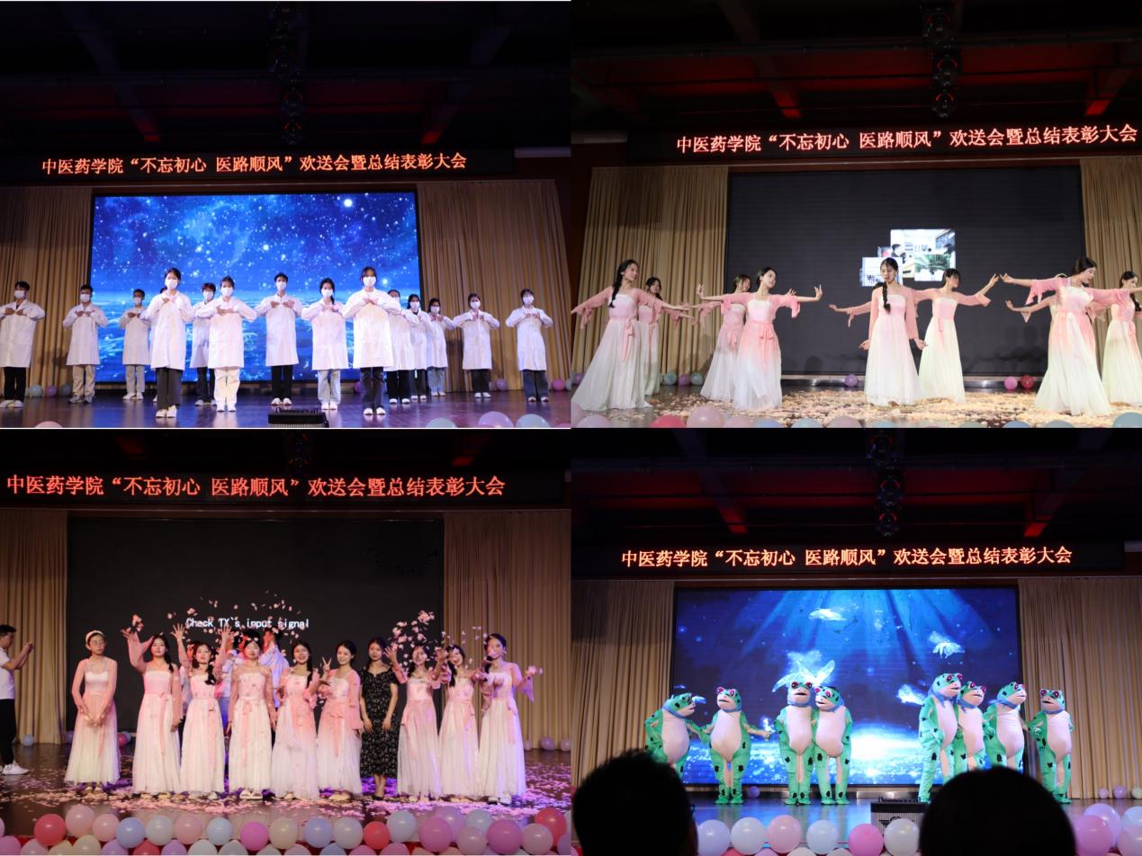 此外,欢送会上,同学们通过歌唱、舞蹈、小品等多种形式,展现了中医药学子的风采和才华。他们以其独特的韵律和舞姿,赢得了在场观众的阵阵掌声。他们的表演不仅展现了中医药学子的青春活力,更寓意着他们将在实习岗位上迎来事业的春天。
