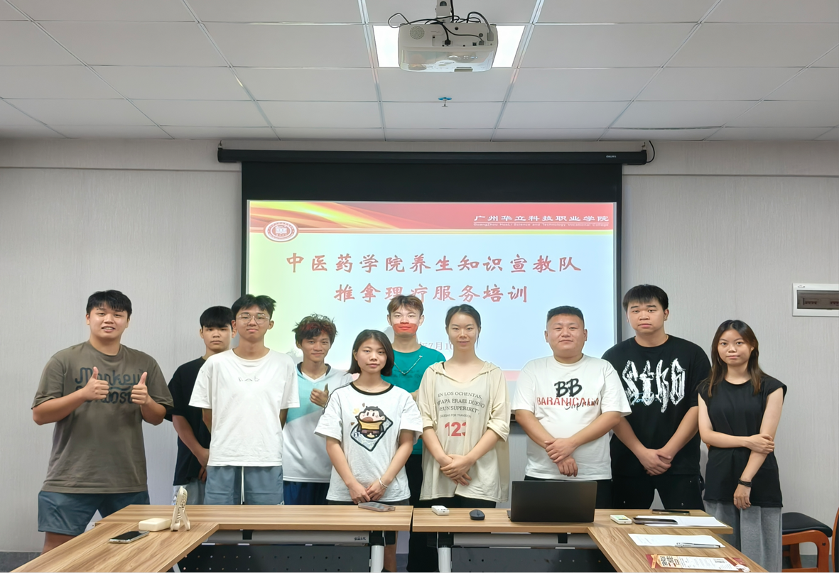 图为 中医院学院养生知识宣教队推拿理疗培训照片