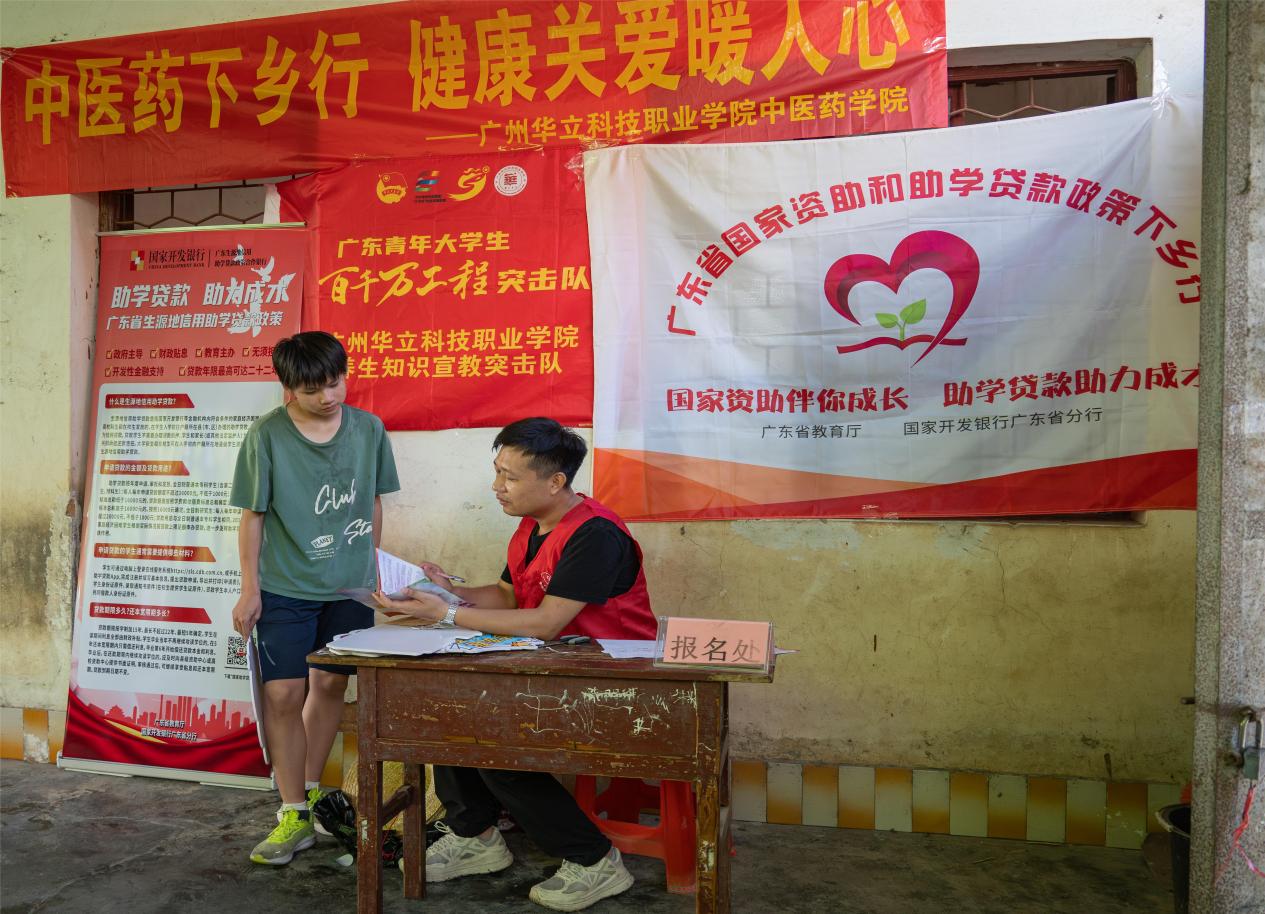 7月17日,为了进一步加强大学生资助政策宣传力度,使国家学生资助政策家喻户晓、深入人心,中医药学院养生知识宣教突击队在兴宁市合水镇开展了国家资助和助学贷款下乡行实践活动。