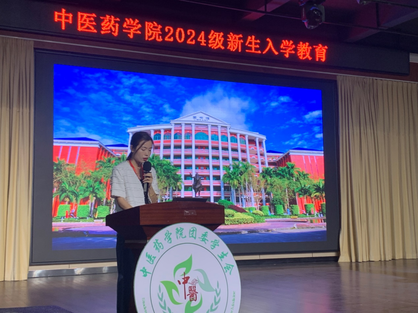 第四个环节由中医药学院团委书记谢梓婷老师,着重向同学们介绍共青团知识,以及共青团的重要性,以及同学们最关心的团组织关系转接的流程等等。团学教育让新生更快了解学校的团学组织和活动,激发他们的参与热情,培养团队合作精神和社会责任感。