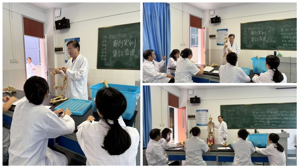 本次集体备课,还邀请了健康学院朱建刚教授进行实训教学指导,朱教授为各位授课教师集训实验课的教学内容,包括实验室的日常维护,上课的基本流程以及实训室中的人体骨架模型,各器官组织模型,大体标本等进行了详细的讲解和辨认。
