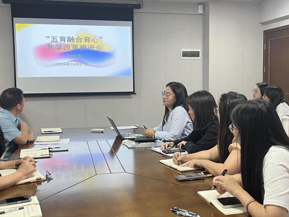 校办刘芳岑老师分享了“五育融合育心”教学改革工作推进的指导思想,以“心理+知识+品德”为教学目标和通过五育与心育的交叉融合教学为改革目标,主要思路和培训计划,与学院教师进行了探讨,并为进一步工作作了计划。