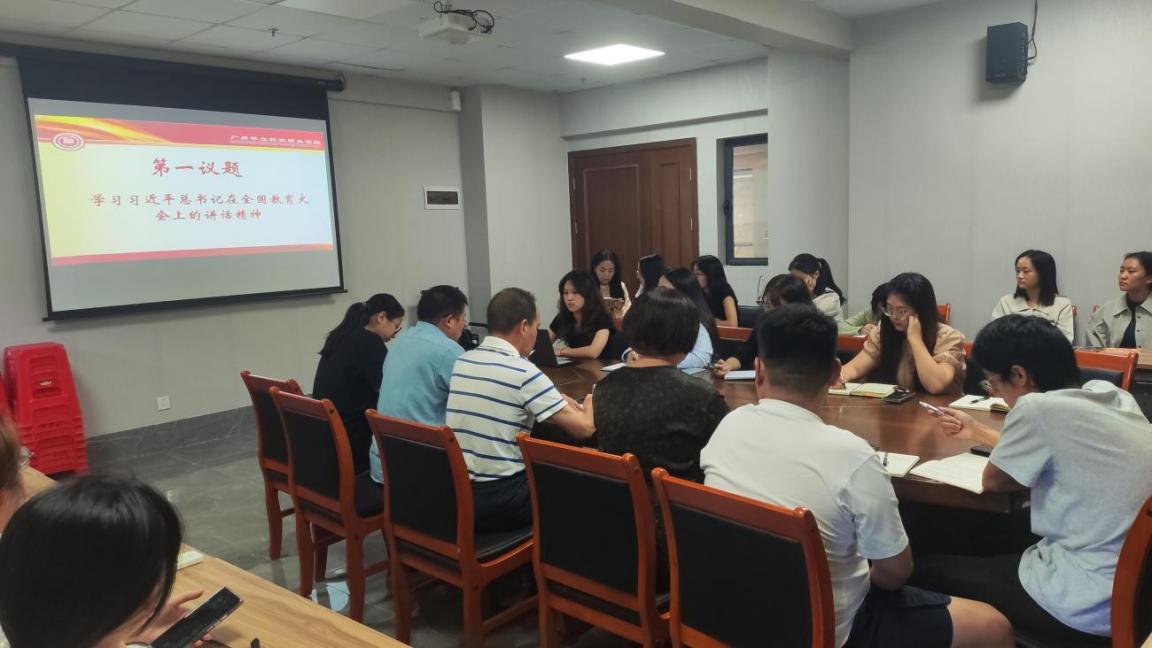 直属党支部书记、副院长曾祥彪带领全院教师深入学习习近平总书记在全国教育大会上的讲话精神,在学生工作方面提出了具体的工作思路,对学院本学期发展对象情况进行了通报,提出学院流动党员组织关系转接工作的要求。