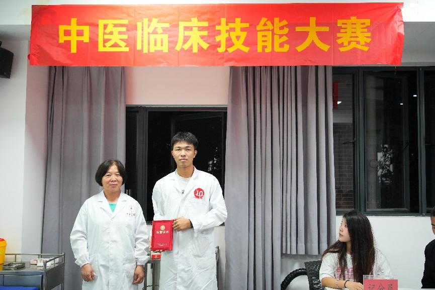经过激烈的角逐,比赛结果最终揭晓。植奇龙同学以满分的优异成绩荣获一等奖,中医药学院副院长曾祥彪亲自为他颁发了荣誉证书和奖品,并对他表示了热烈的祝贺。二等奖由容楚鹏同学摘得,他与一等奖仅有一分之差,展现了扎实的实力和潜力,由张志勇副院长为其颁奖。三等奖则由李双琰、陈婉婷、李俊逹三位同学共同获得,他们与一等奖相差2分,显示了比较出色的中医临床技能,由张华老师为其颁奖。