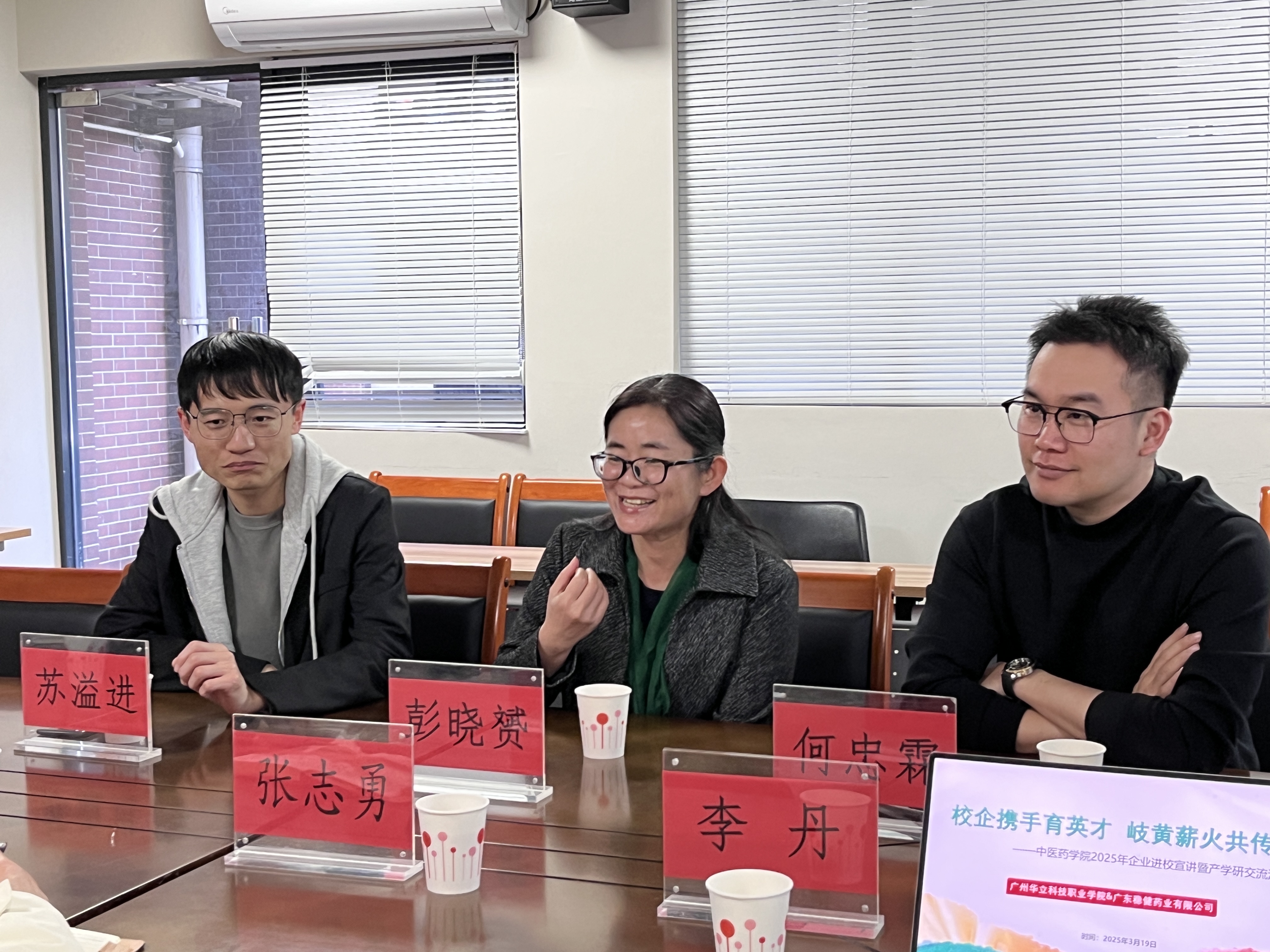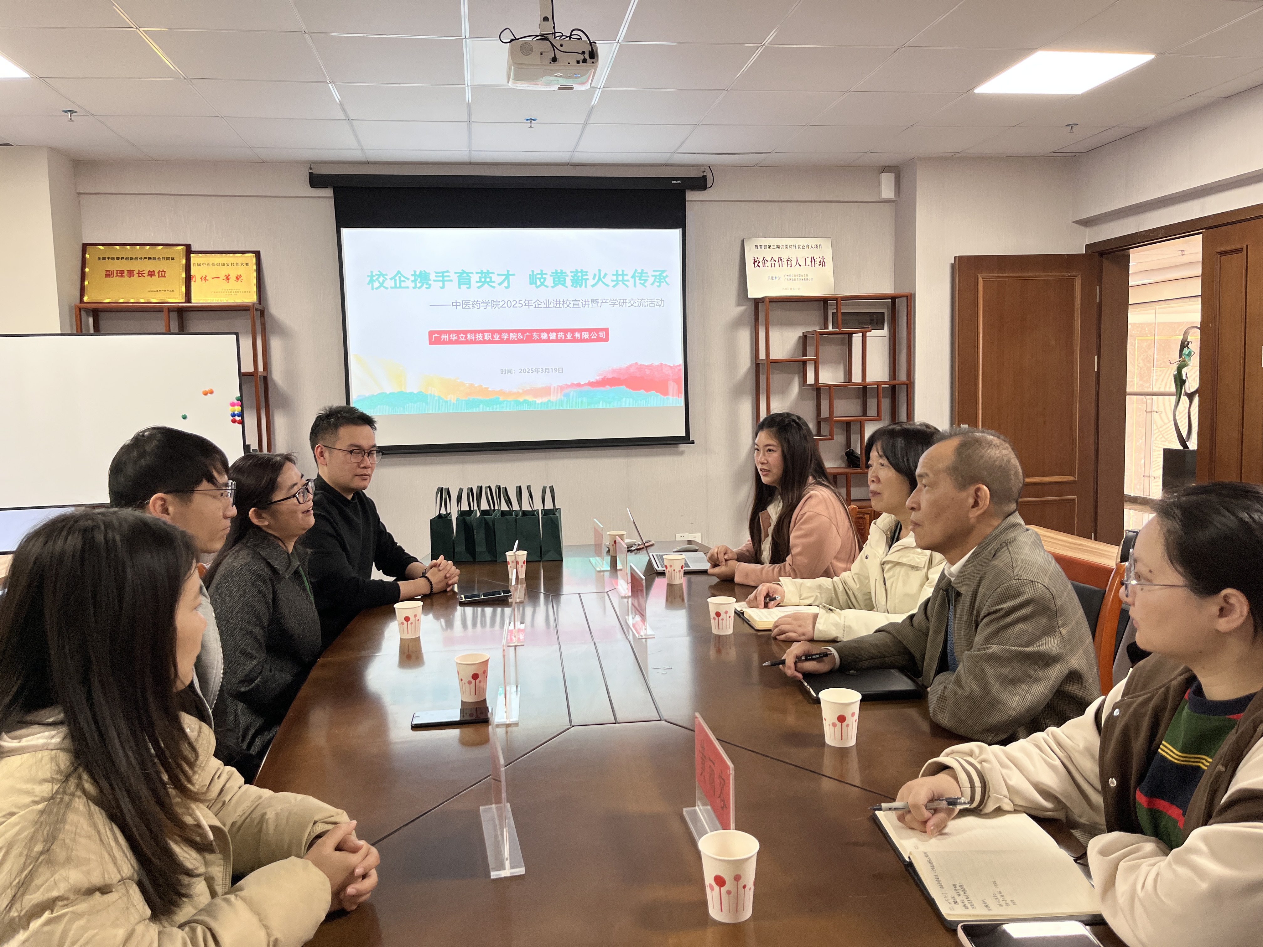3月19日,广东稳健药业有限公司推广部总监率队赴中医药学院开展校企合作洽谈。
