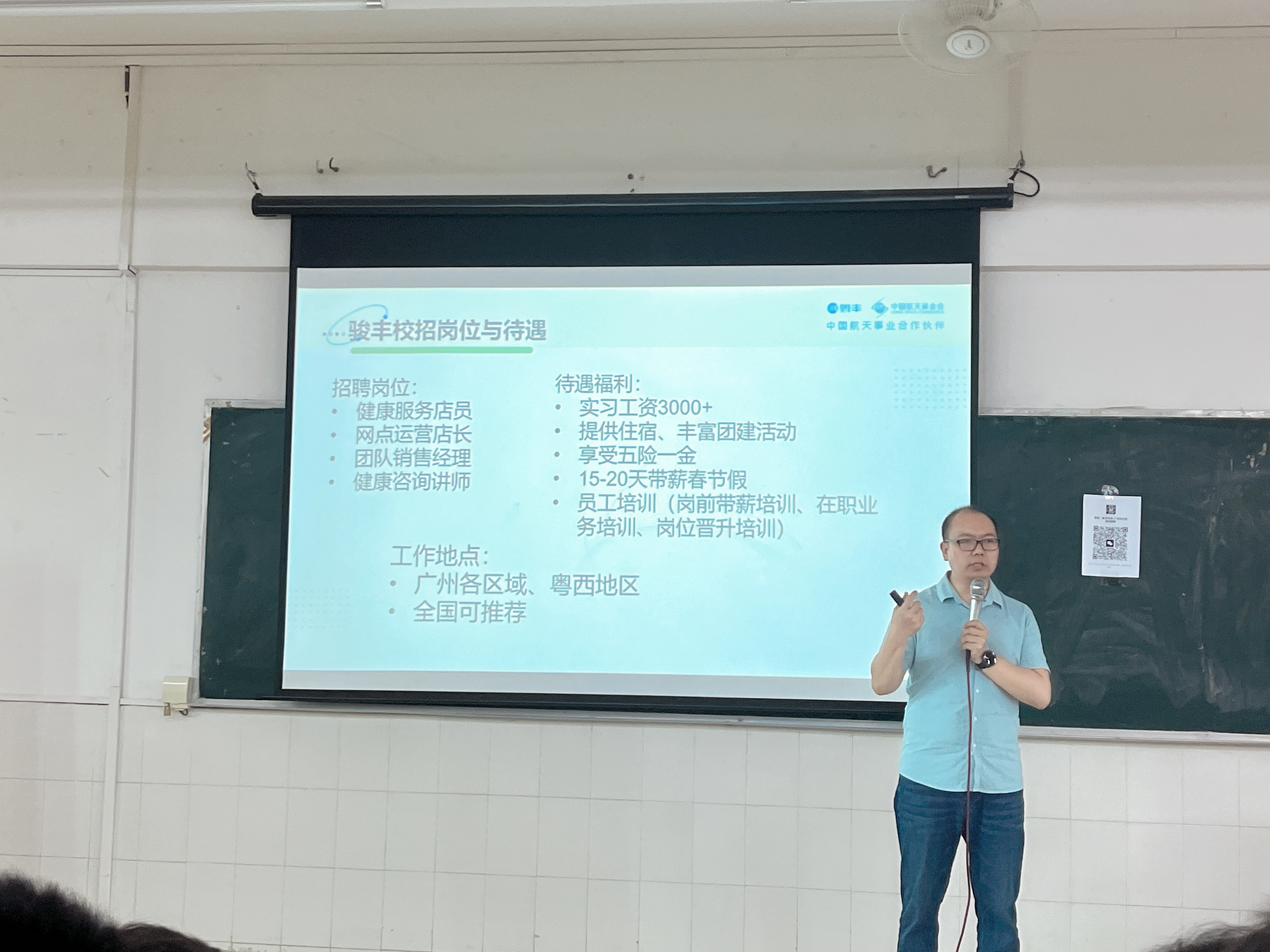 面向中医药学院2022级、2023级学生开展实习就业宣讲会骏丰生物技术有限公司人力资源总监李新平通过企业宣传片、岗位介绍及职业发展路径讲解,向学生全面展示了企业在中医药研发、生产及大健康领域的核心优势。