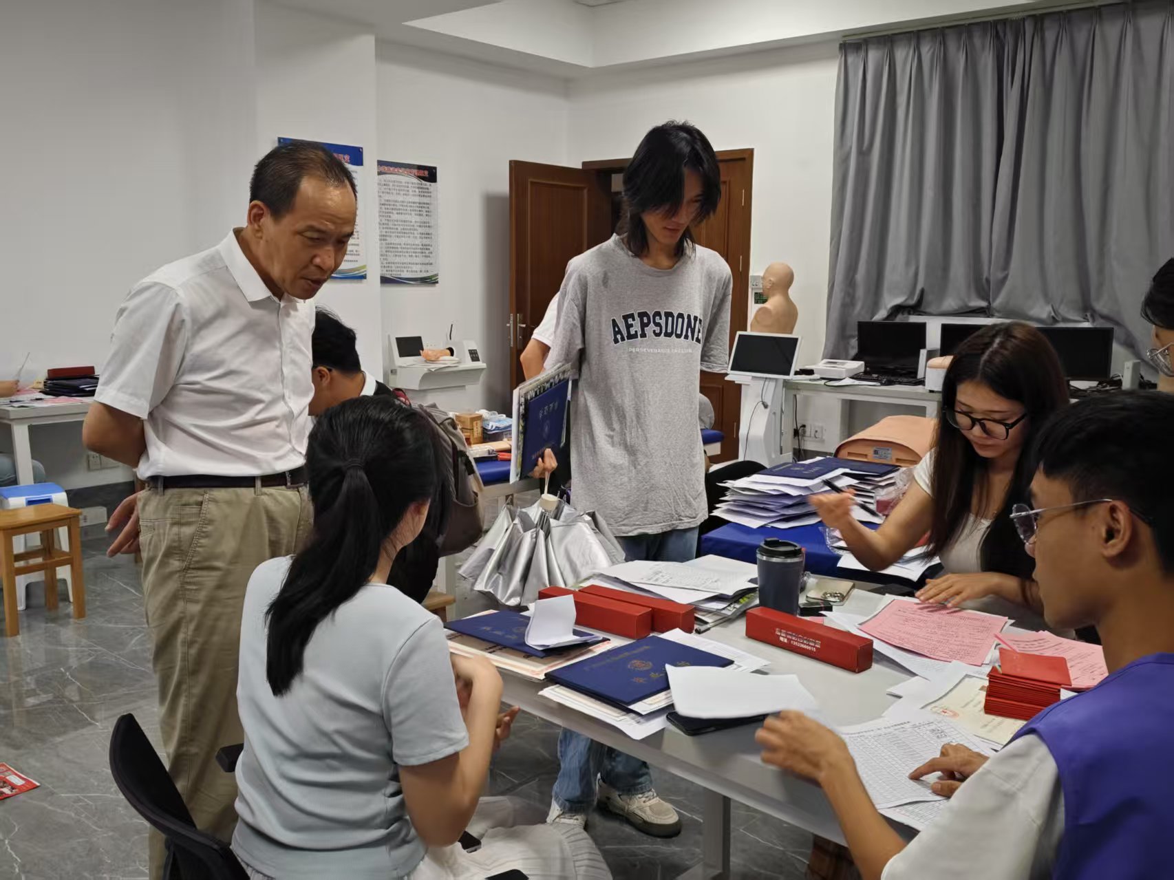 中医药学院院领导亲临现场指导工作,对志愿者们的辛勤付出和展现出的良好精神风貌给予了充分肯定,对他们的奉献精神表示赞许。同时,领导与在场办理毕业事宜的学生亲切交流,关切询问其毕业去向与未来规划。传递出学院对一线工作的重视和对毕业生的深情关怀。