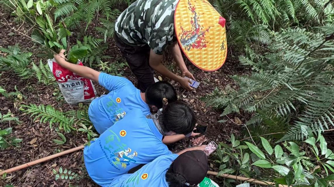 7月15日上午,广州华立科技职业学院“神农侠旅”突击队四名队员在潘菽弢博士带领下,走入福堂镇读楼村的山林中拍摄野生中药材,并移栽部分药材种苗,为后续的中药材育苗基地建设提供科学依据。