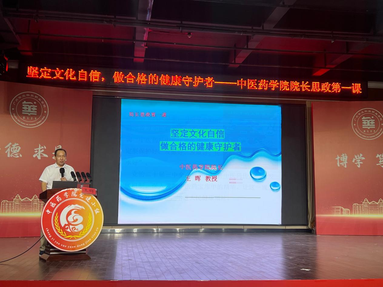 2025年9月8日晚,中医药学院院长王晖老师,在图书馆八楼为学院2025级新生带来以“坚定文化自信,做合格的健康守护者”为主题的开学思政第一课,为新学期师生的学习与成长筑牢思想根基。