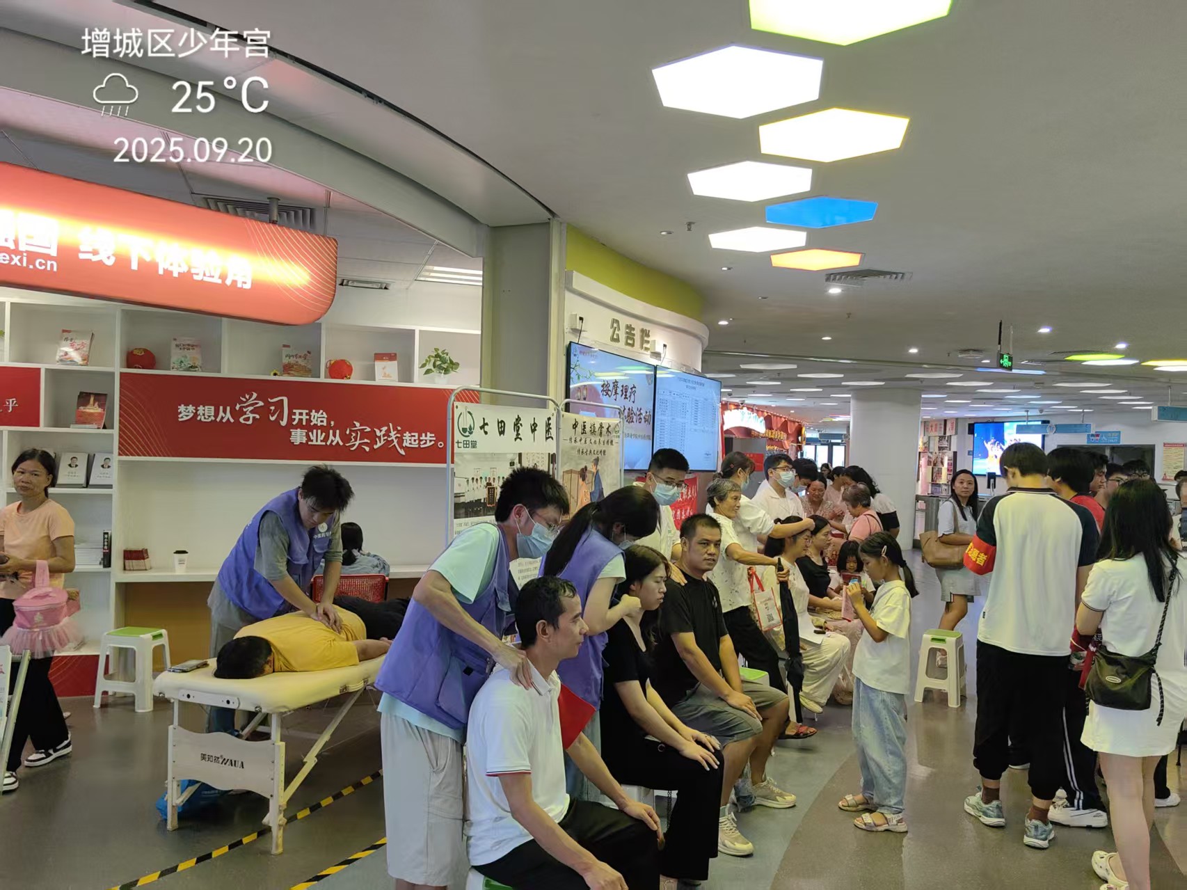 9月20日上午,广州华立科技职业学院中医药学院在增城区少年宫成功举办“华立杏林暖增城,爱心推拿伴等候”公益服务活动,以实际行动服务社区、回馈社会,为学生搭建专业实践平台。