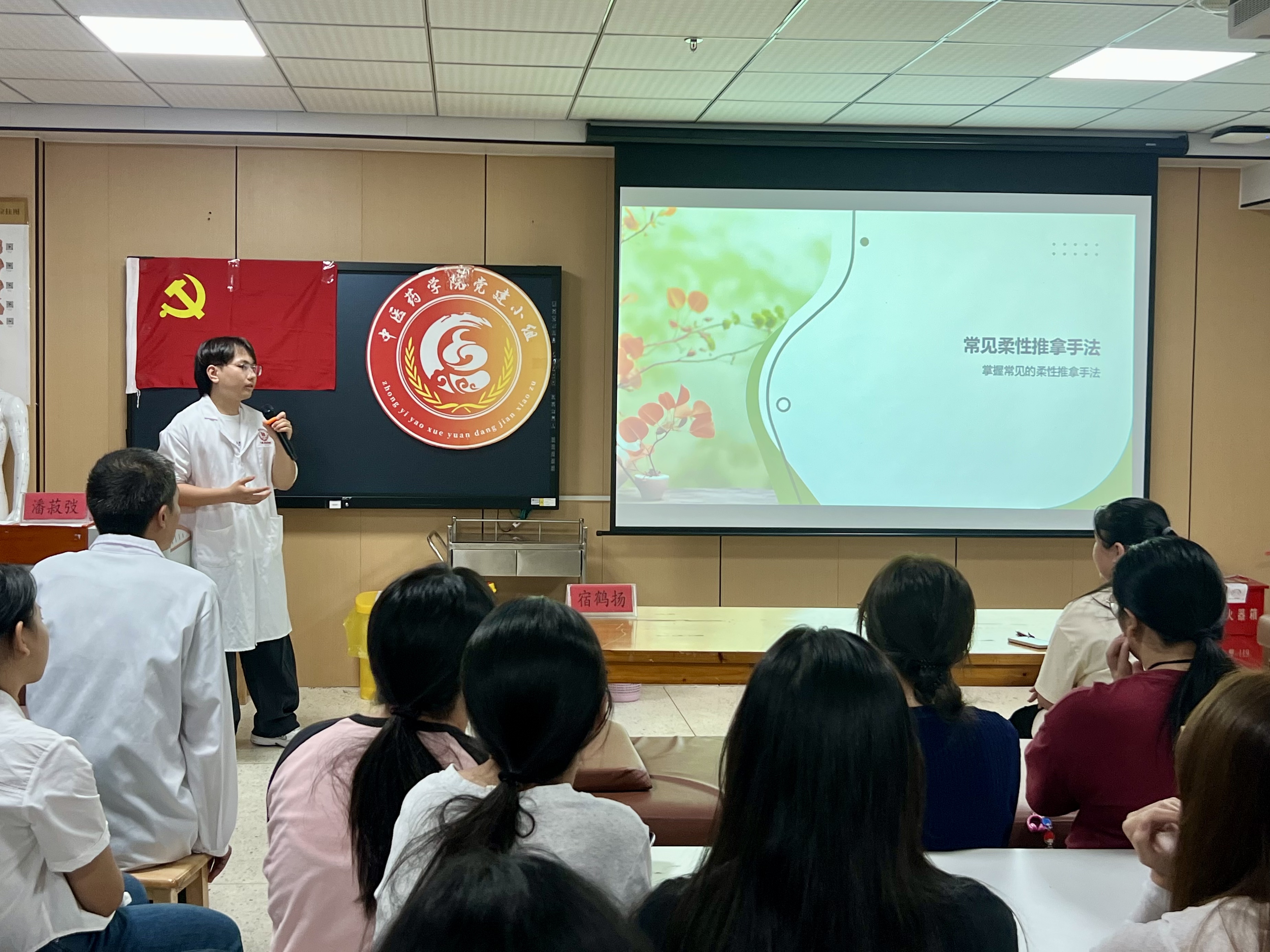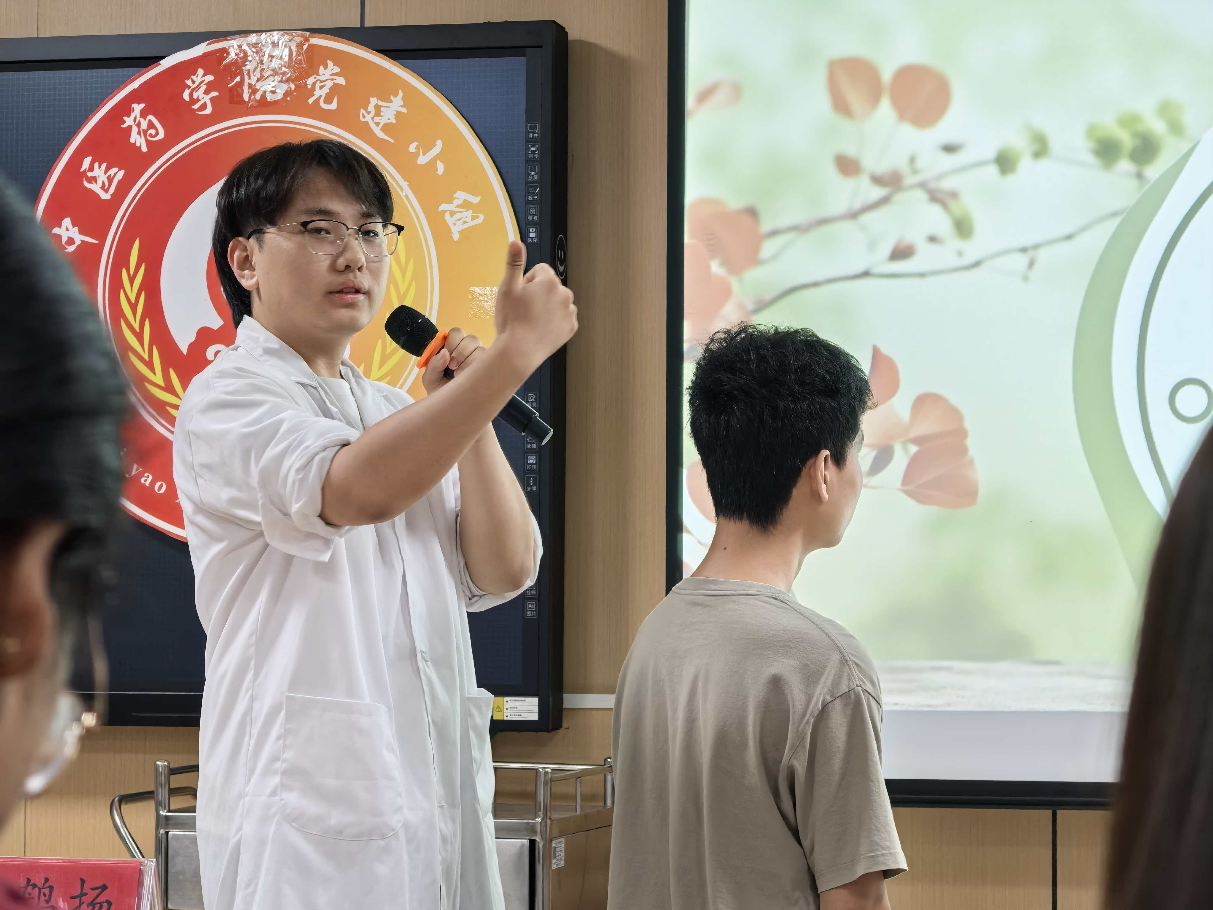在本次专题讲座的现场,宿鹤扬作为主讲人。他以中医柔性推拿为主题,从传统中医理论出发,讲解其“以柔为法、以柔为用”的基本原理。手法介绍环节,他不仅演示推、拿、按、摩等常用手法,还强调手法运用的轻重缓急与力度把控。此外,他针对不同症状适用性,结合临床案例,说明柔性推拿对颈椎病、腰椎间盘突出等常见病症的调理作用。讲座中,宿鹤扬将中医经络学说、气血理论等专业知识,通过形象比喻和生活案例转化为通俗易懂的内容,让同学们轻松掌握要领,对中医柔性推拿有更深入认识和理解。