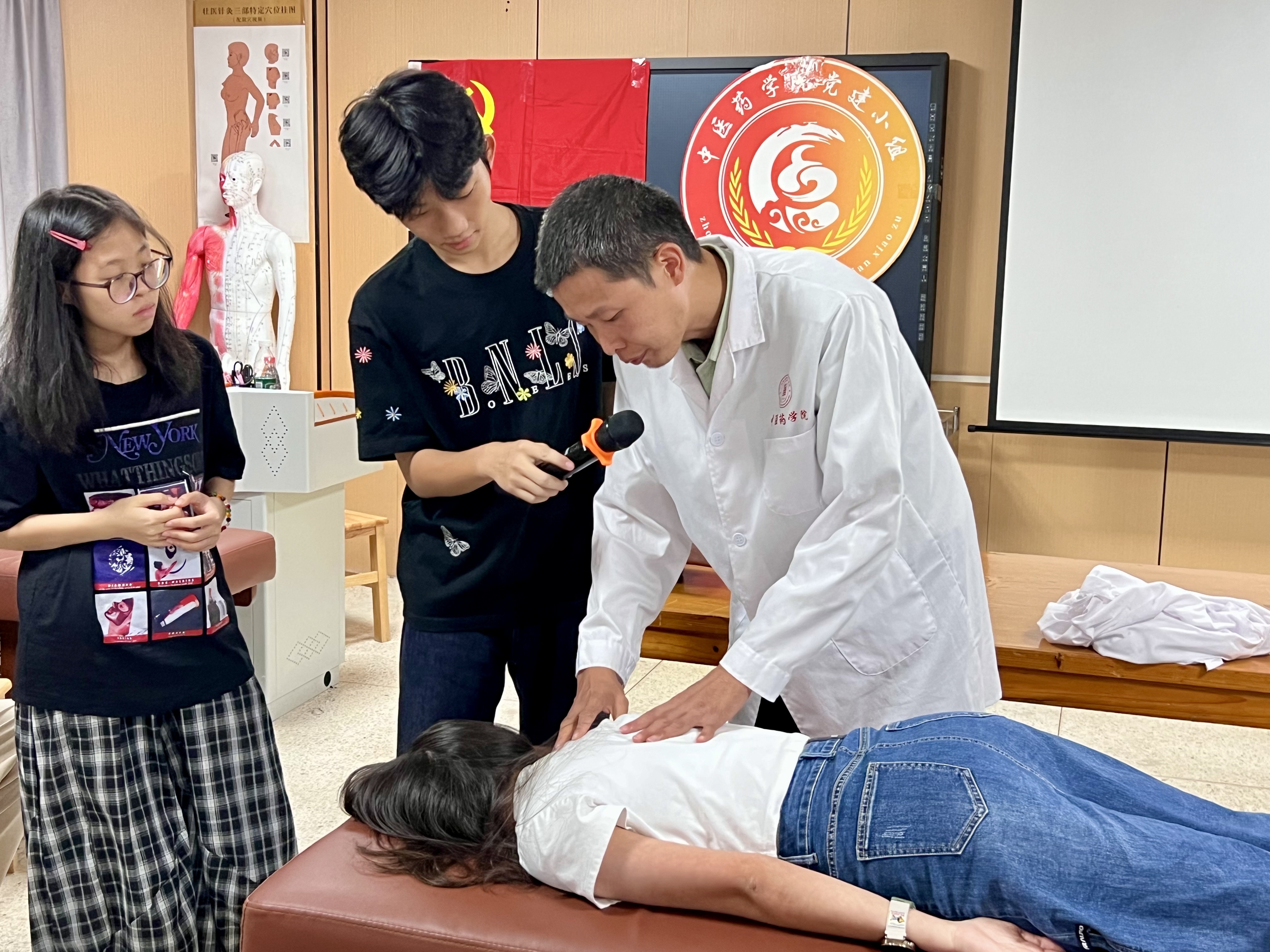 为了让同学们能够更加直观地理解和感受中医推拿的精妙之处,宿鹤扬特意选取了几个典型的临床案例进行现场演示。在演示过程中,他不仅详细展示了各种推拿手法的具体操作步骤,还深入浅出地讲解了每个动作的发力技巧、操作要领以及需要注意的细节问题。通过理论与实践结合的方式,呈现中医推拿的科学性、实用性和艺术性,让同学们领略传统医学魅力。演示生动有趣、互动性强,现场掌声热烈,展现同学对传统技艺的浓厚兴趣与高度认可。