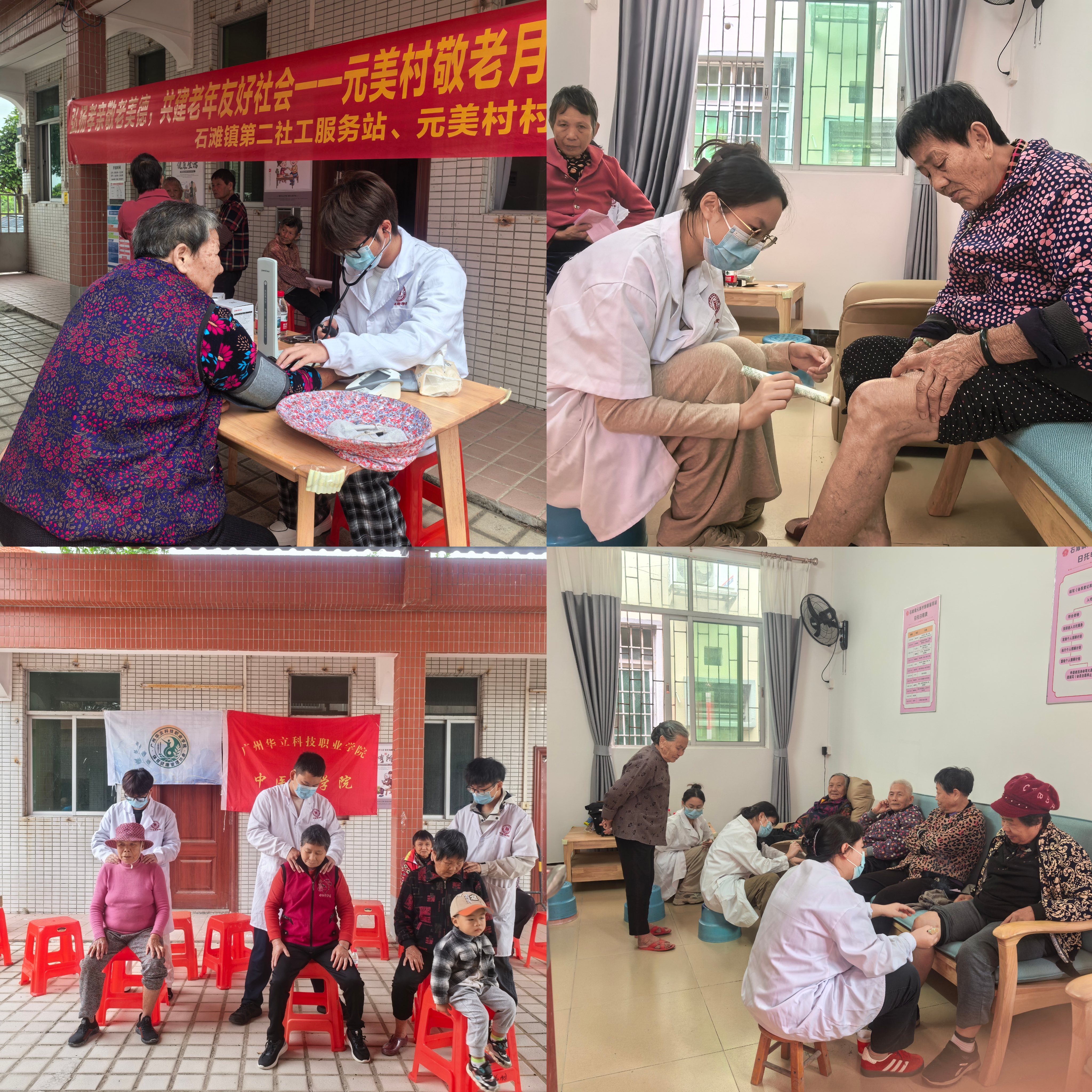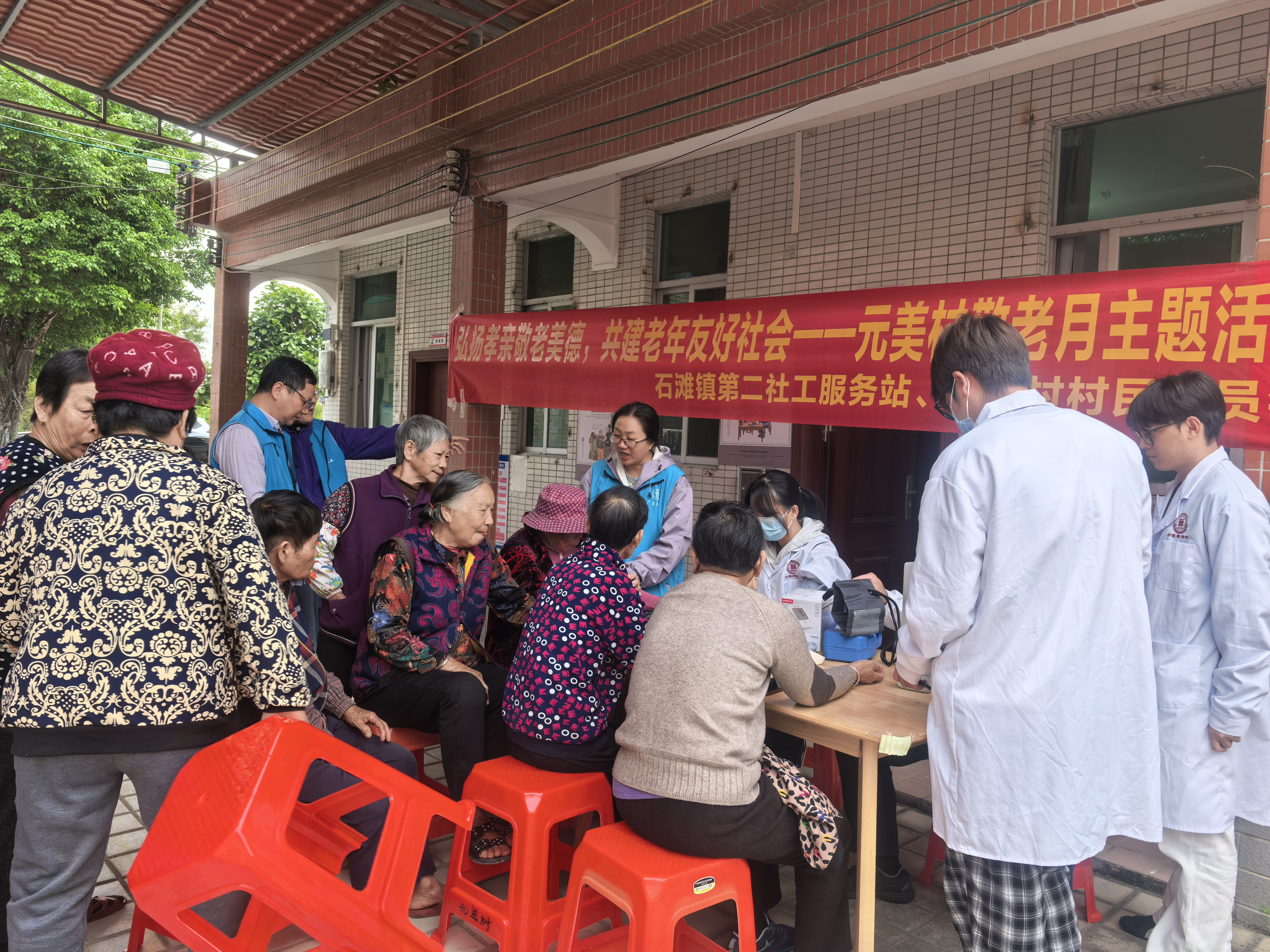 岁岁重阳,今又重阳。在重阳节即将到来之际,为积极响应“弘扬孝亲敬老美德,共建老年友好社会”的敬老月主题号召,10月23日上午,我院曾玉梅老师带领由党建小组、中医药协会、体育健康管理协会学生共同组成的志愿者团队,前往石滩镇元美村颐康站开展公益义诊活动。本次义诊是石滩镇第二社工服务站、元美村村民委员会联合举办的敬老月主题系列活动的重要组成部分,中能建电力医院、德伦口腔(亿达院区)亦共同参与,多方携手为当地老年群体送上健康关怀。
