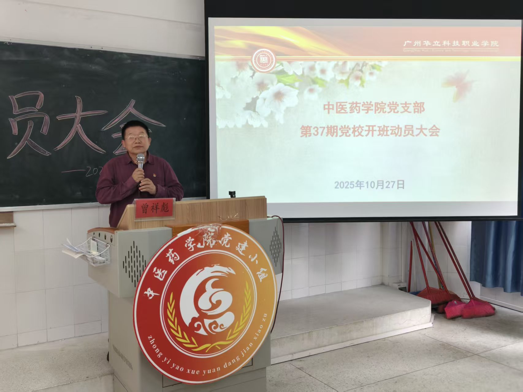 2025年10月27日中午,中医药学院直属党支部在党校正式开班前,在西二201教室举行了庄重而热烈的开班动员大会。学院党支部书记曾祥彪、支部组织委员郑洁仪老师出席会议并作动员讲话,全体39名经过层层选拔的入党积极分子参加了会议。