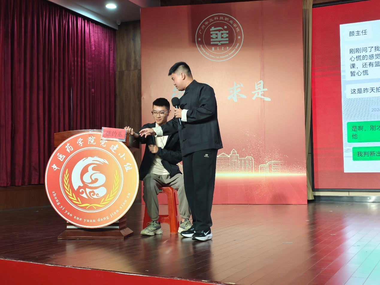 随后,兼具“老师”与“学长”双重身份的颜约基同学,为大家带来了中医全息脉诊法的精彩分享。他结合大量临床图片与典型案例,深入浅出地讲解了脉诊的基本原理、脉象分类及临床意义,让原本抽象的脉诊知识变得直观易懂。为了让同学们更具象地感受脉诊的神奇,他还现场邀请一名同学上台实操演示,一边把脉一边细致讲解:“脉象的浮沉、迟数、虚实,都对应着人体不同的健康状态,这需要长期实践才能精准把握。”随后,两位跟随其系统学习脉诊的学长也登台分享了自己的学习心得,从理论积累到实操练习中的难点突破,毫无保留地传递经验。颜约基还现场教学脉诊的规范指法,从手指摆放位置到力度控制技巧,逐一示范指导,让在场同学在亲身体验中加深了对脉诊技艺的理解。