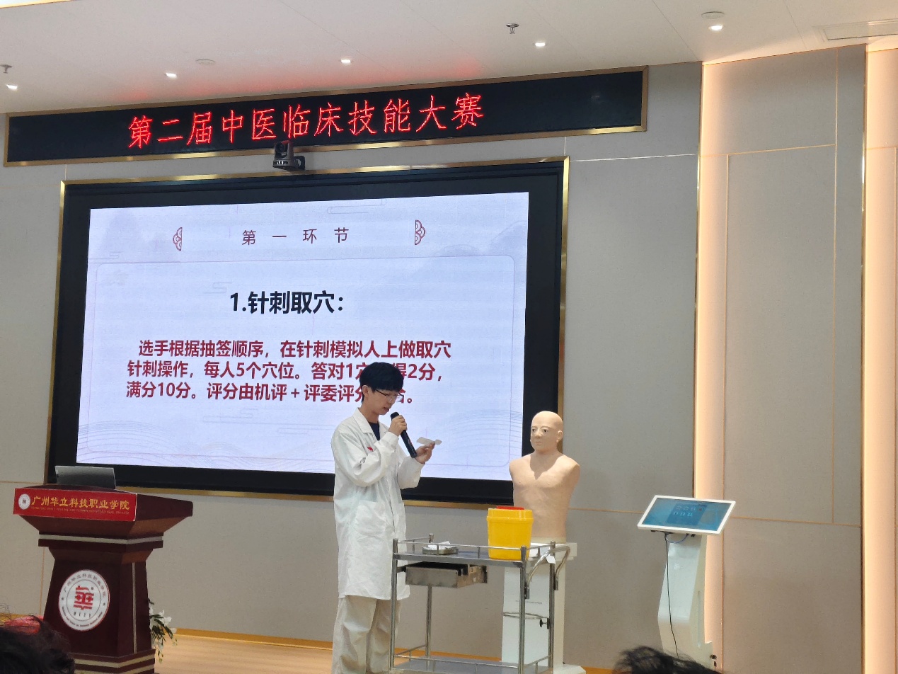 大赛以“以赛促教、以赛促学、产教融合、赋能成长”为宗旨,设置了“针刺取穴”与“病例分析”两 大竞赛环节,全面考察学生的实操能力与临床思辨能力。比赛现场,选手们沉着应战,操作娴熟,分析精准,充分展现了中医学子扎实的专业功底和良好的精神风貌。