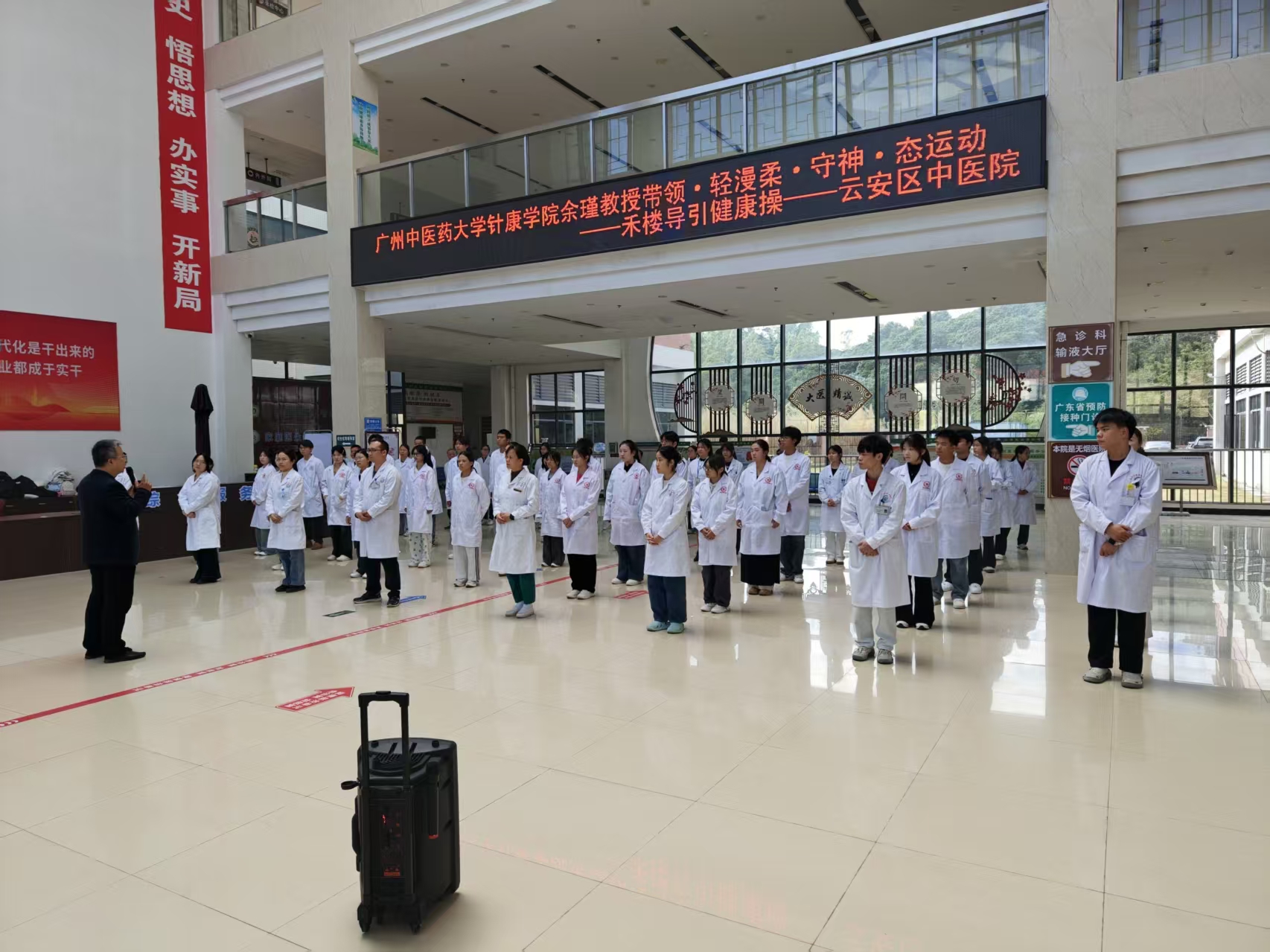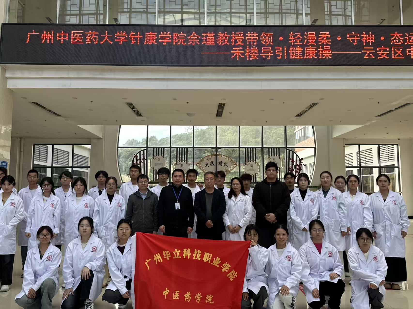 为传承中医智慧,涵养健康素养,推动传统中医养生文化走进校园,让师生近距离感受中医导引功法的独特魅力,2025年11月21日,陈耀辉副院长率中医药学院师生代表,前往云安区中医院开展“禾楼导引健康操”主题交流学习活动,广州中医药大学针康学院余瑾教授、云安区中医院院长敖威、主任陈展云及中医药学院吴秉晋老师等共同参与此次活动。