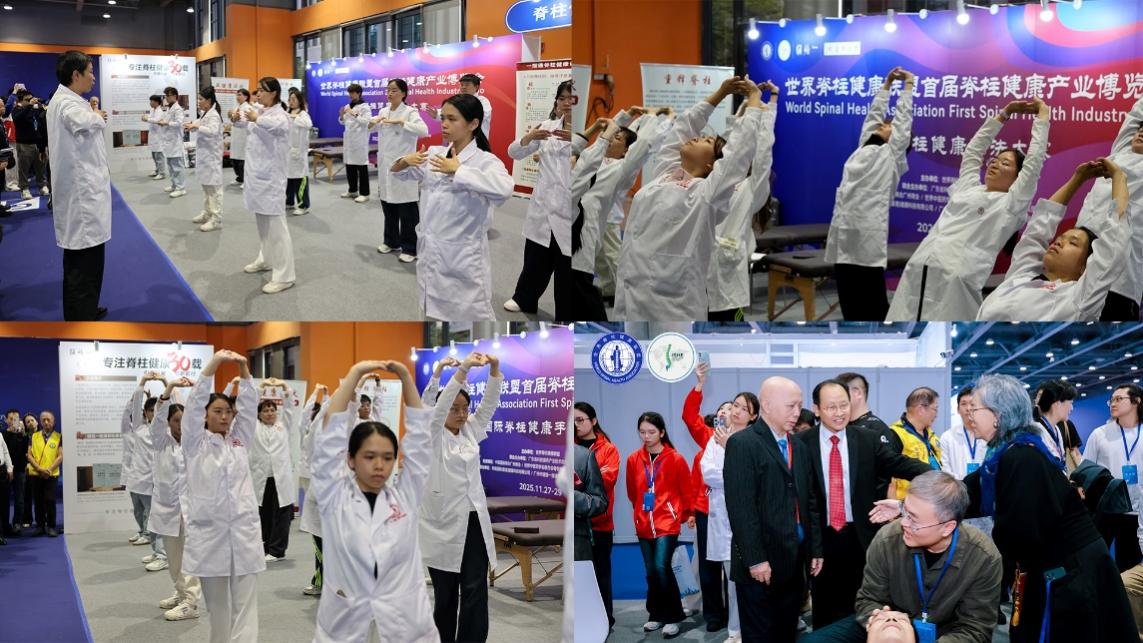 下午14:00,首届“国际脊柱健康手法公开赛”在脊柱健康体验区隆重举办。我院率先登场表演“一指通”脊柱保健操,同学们动作整齐,动息相合,现场响起热烈的掌声。随后来自国内外的数十名选手轮番上场展示脊柱治疗的独门秘技,我院师生有幸现场观摩学习了当今多个流派的脊柱治疗技术。