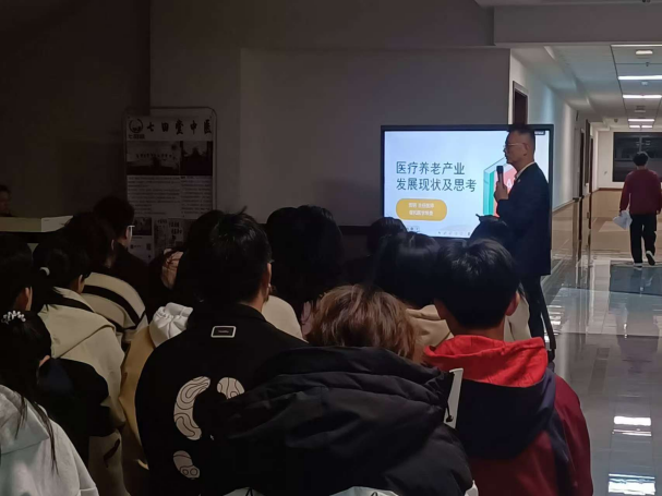 讲座中,贺教授结合自身丰富的行业经验,系统剖析了当前医疗养老产业的发展现状、政策支持体系以及市场需求特点。他指出,随着老龄化程度加深,兼具医疗护理与养老服务功能的复合型产业模式成为发展主流,而专业人才短缺是制约产业高质量发展的关键瓶颈。