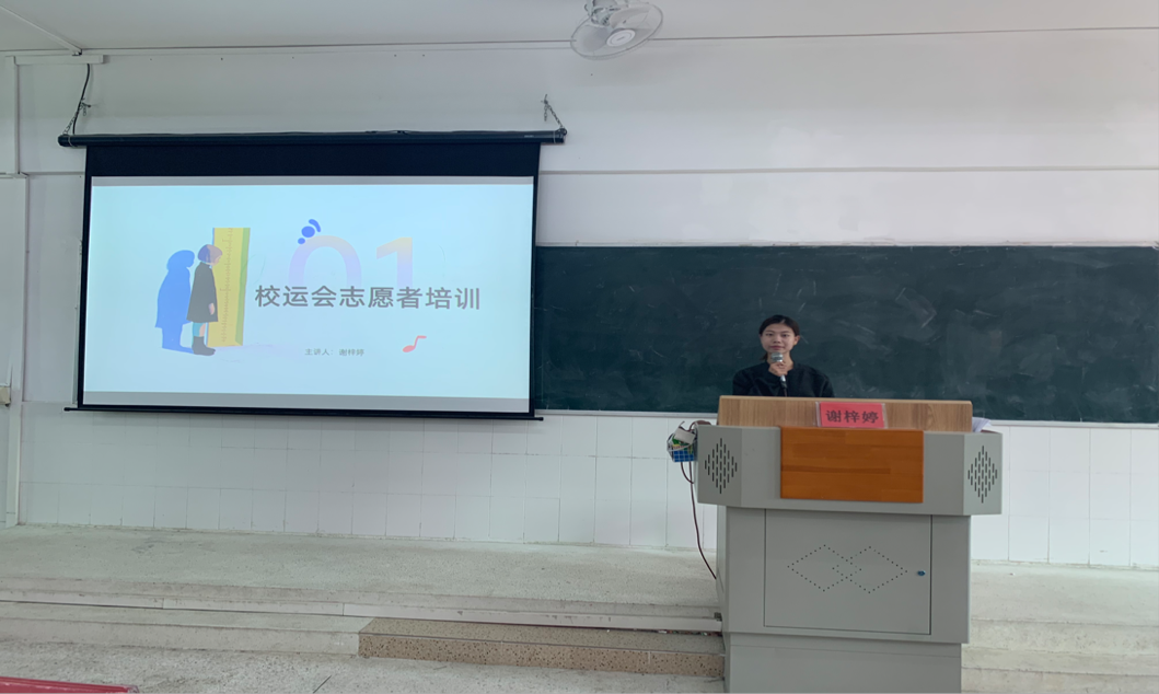 培训现场,中医药学院团委书记谢梓婷老师首先围绕“校运会志愿者培训”展开讲解,明确了志愿者的服务职责、礼仪规范与工作流程,帮助志愿者们快速掌握服务要点。