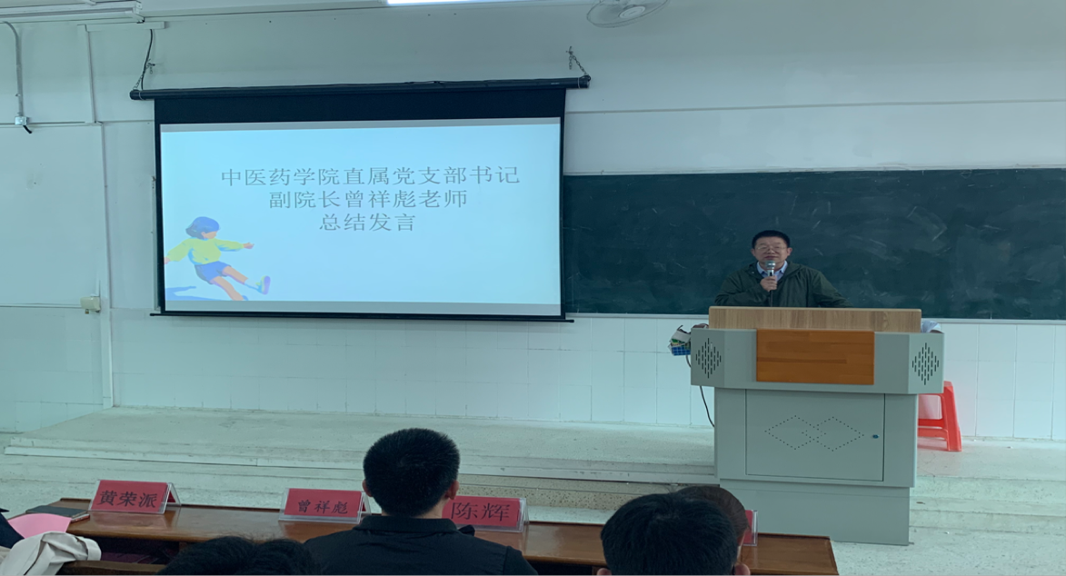 中医药学院直属党支部书记曾祥彪老师为本次大会做总结