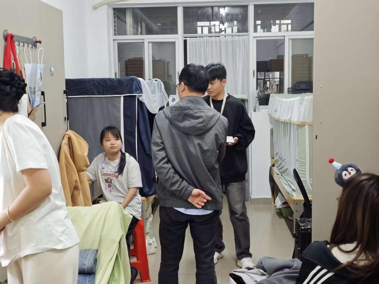 走访过程中,院领导与返校学生亲切交流,细致询问大家的假期生活、返程旅途情况,认真倾听同学们在住宿、学习、生活等方面的意见和建议,叮嘱同学们尽快调整作息、收心归位,以饱满的精神状态投入到新学期的学习生活中。同时,重点检查宿舍卫生、水电安全、消防设施等情况,提醒同学们增强安全防范意识,严格遵守宿舍管理规定,共同维护整洁文明的居住环境,互帮互助、和睦相处。