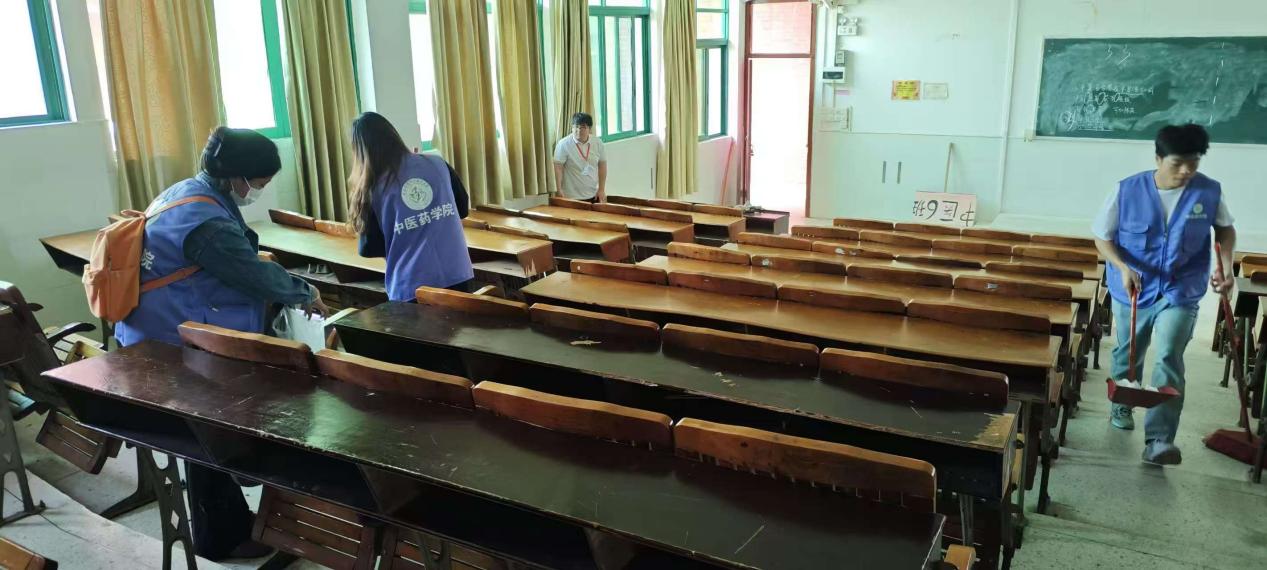 志愿者们清扫教室