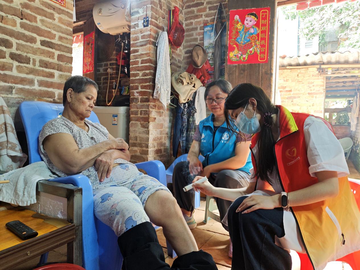 志愿者到村民家中为其艾灸