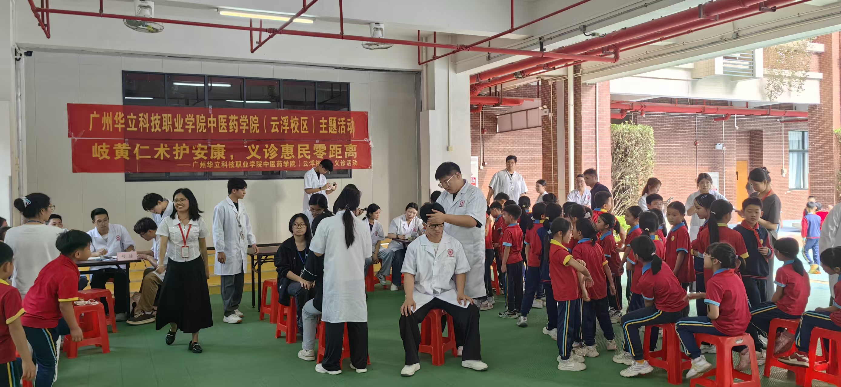 华立中英文学校校长邱志宏、副校长宋依谜莅临现场指导工作,中医药学院副院长张志勇、陈耀辉带领学院骨干教师及学生志愿者,共同参与本次公益服务活动。