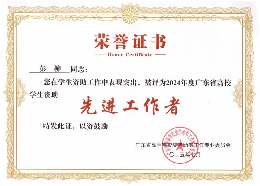 根据《关于表彰2024年度广东省高校学生资助先进工作者的通知》,我校彭柳、甘芳婷老师获评“2024年度广东省高校学生资助先进工作者”。两位老师坚守育人初心,用心帮扶学生,诠释了资助工作者的责任担当。